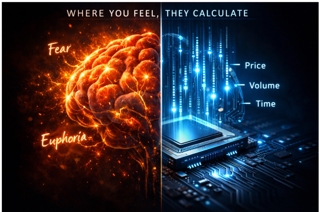 Os grandes players não operam com o coração. Eles operam com algoritmos, com modelos matemáticos complexos, com mandatos de risco rigorosos, com uma lógica implacável que transcende a emoção humana. Para eles, o medo e a ganância não são emoções a serem sentidas, mas dados a serem processados, variáveis a serem inseridas em equações, oportunidades a serem exploradas.
