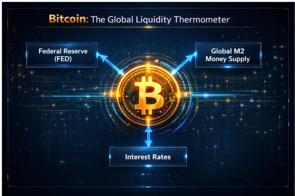 E aqui chegamos ao ponto crucial para a sua blindagem: o Bitcoin não é mais uma ilha isolada, um refúgio intocável, um santuário de liberdade financeira. Ele não dança mais apenas ao som de seu próprio tambor, em sua própria cadência, alheio ao caos do mundo, protegido por sua criptografia. Ele se tornou um termômetro sensível da liquidez global, um espelho brutalmente honesto da economia mundial.
